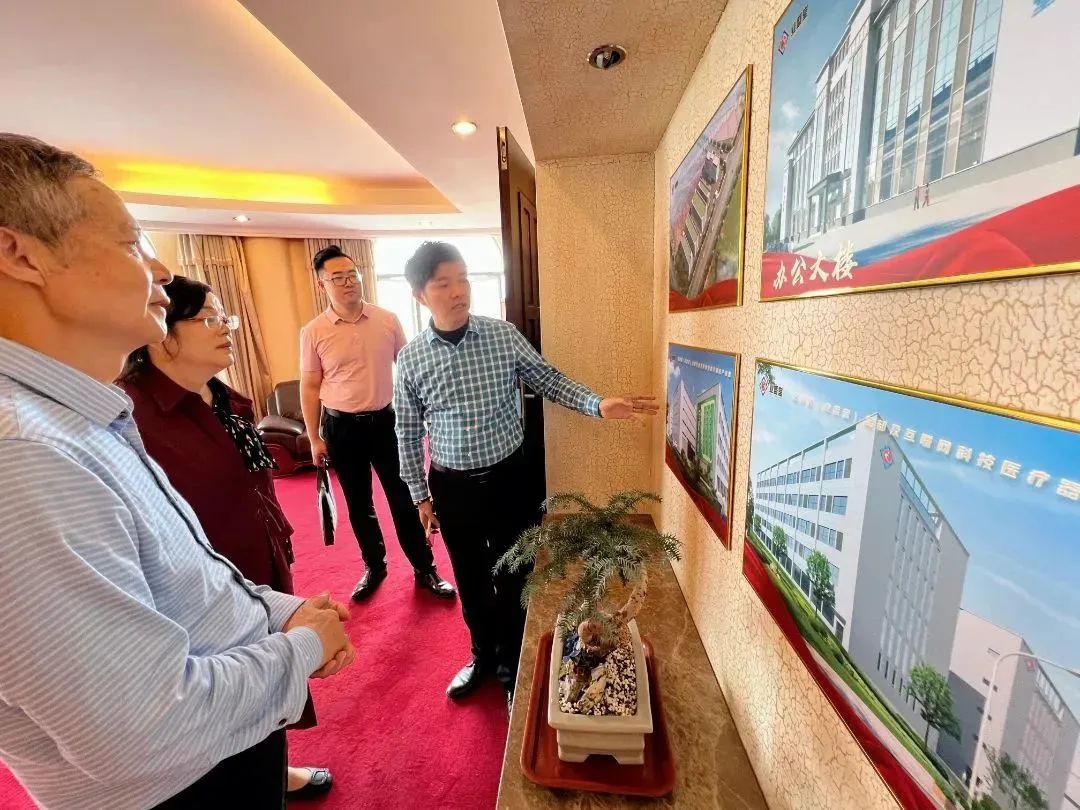 曾總首先對(duì)南昌理工醫(yī)學(xué)院領(lǐng)導(dǎo)一行的到來(lái)表示熱烈歡迎,并向大家詳細(xì)介紹了業(yè)盛堂企業(yè)情況、小藍(lán)物流科技園及醫(yī)療器械產(chǎn)業(yè)基地建設(shè)情況,并一起觀看了業(yè)盛堂企業(yè)宣傳片和金益康互聯(lián)網(wǎng)醫(yī)院宣傳片,了解公司發(fā)展歷程、主營(yíng)品種及未來(lái)發(fā)展方向。