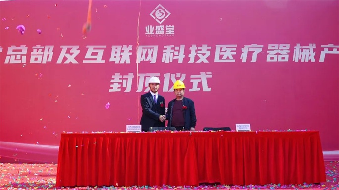 在封頂儀式上,業(yè)盛堂曾水泉董事長與南昌易醫(yī)研究院及山西澳邇藥業(yè)有限公司簽訂了戰(zhàn)略合作協(xié)議。