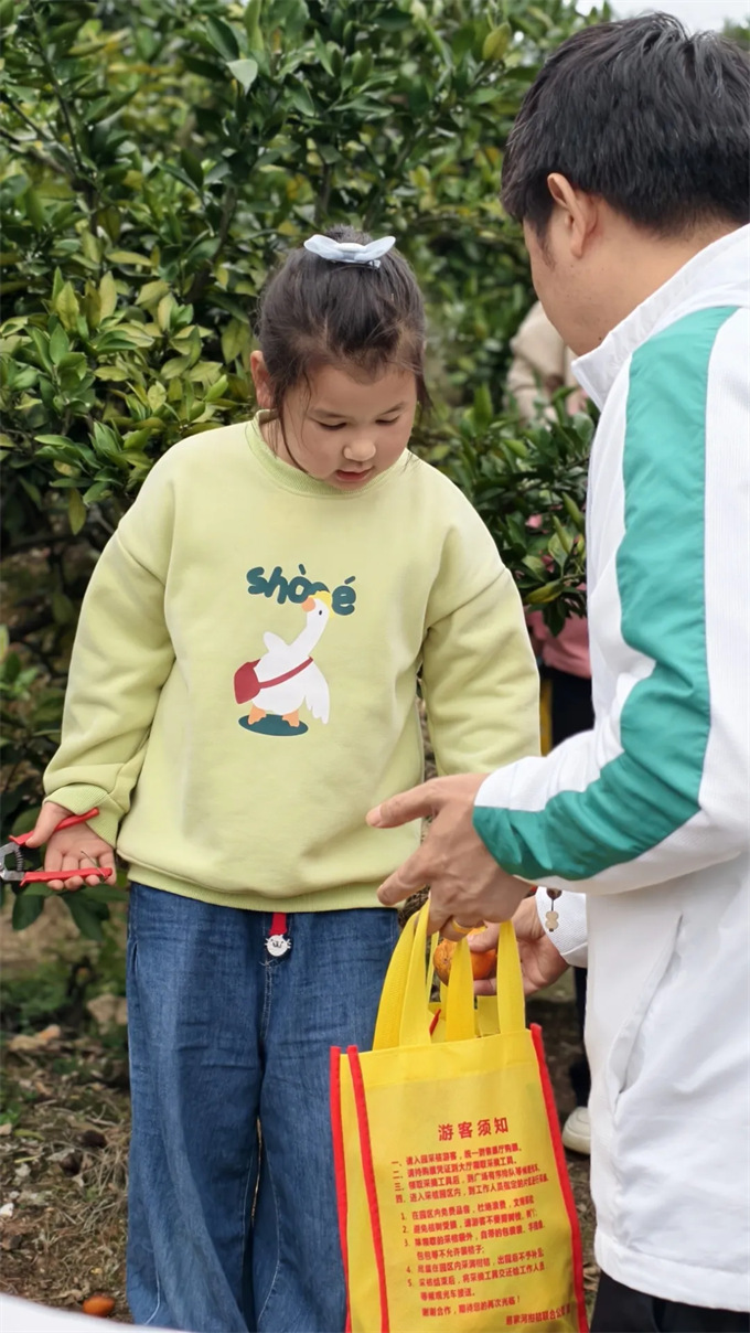 伴隨著微風(fēng),業(yè)盛堂人穿梭在田間果園,一邊欣賞田園風(fēng)光,一邊將一顆顆金黃的橘子摘下放入袋中。忙碌采摘的身影,歡樂的笑聲,與果園的綠葉、果實交織在一起,為果園增添了無限生機(jī),大家也收獲了一袋袋豐碩的“勞動成果”。