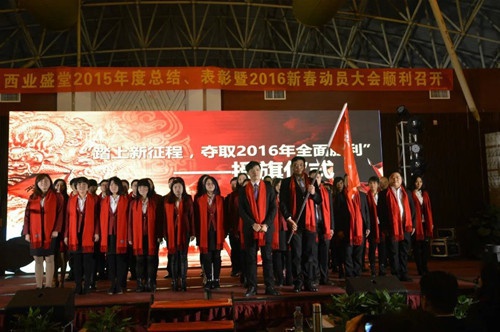 業(yè)盛堂2016聯(lián)歡晚會(huì)在莊嚴(yán)的國(guó)歌聲并伴隨著升旗儀式,聯(lián)歡晚會(huì)拉開帷幕。